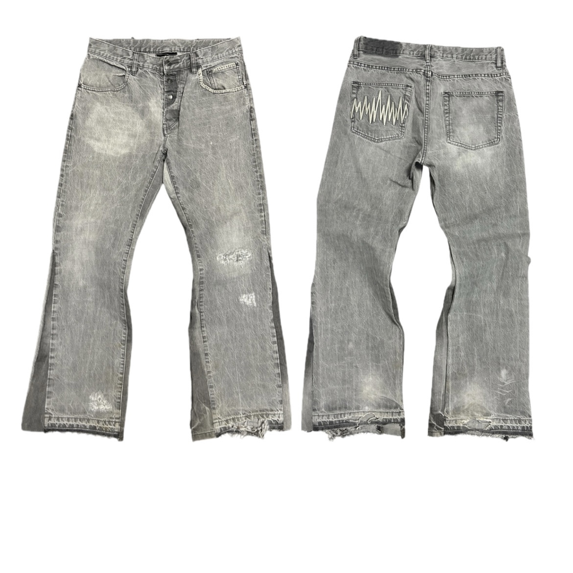 джинса 100% хлопок. Красивая варка. Небольшой дистресс в нижней части штанины, а также искусственно порван низ. На левом кармане строчка плотной ниткой в ручную. Красивый клеш фит (фото по запросу, выгружу ближайшие пару дней).